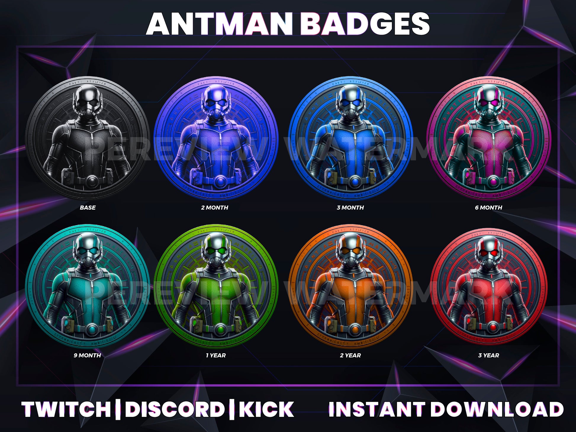 View compareAnt-Man Sub Badges | Base to 3 Year Marvel-Inspired Evolution Badge Set for Streamers