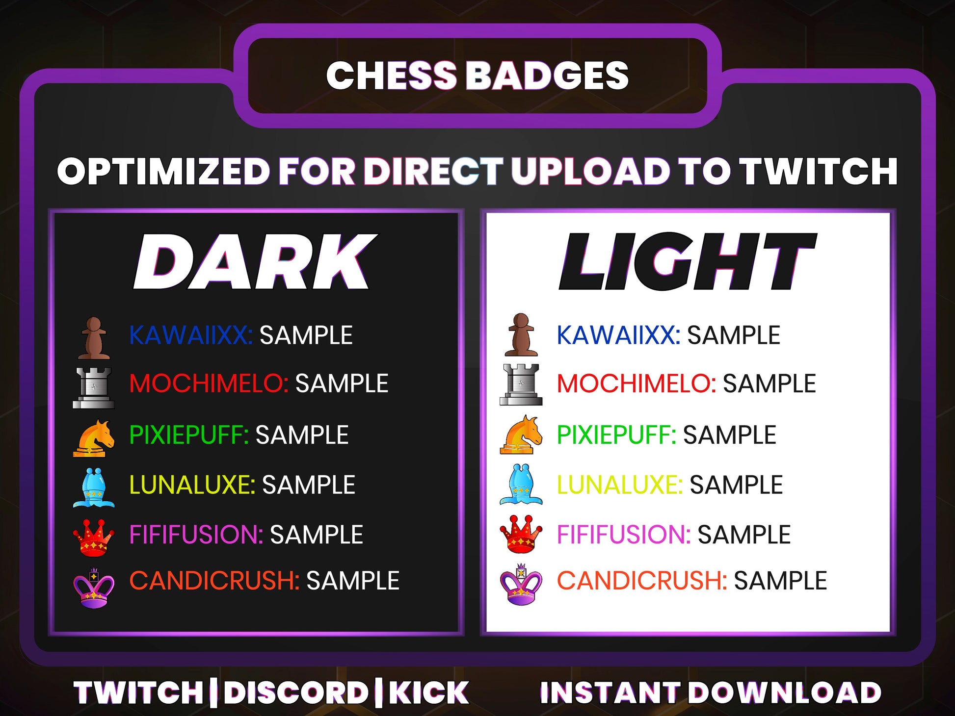 Whether you're streaming chess, tactics, or brainy games, this pack lets your subscribers rise from pawns to powerful kings and queens.