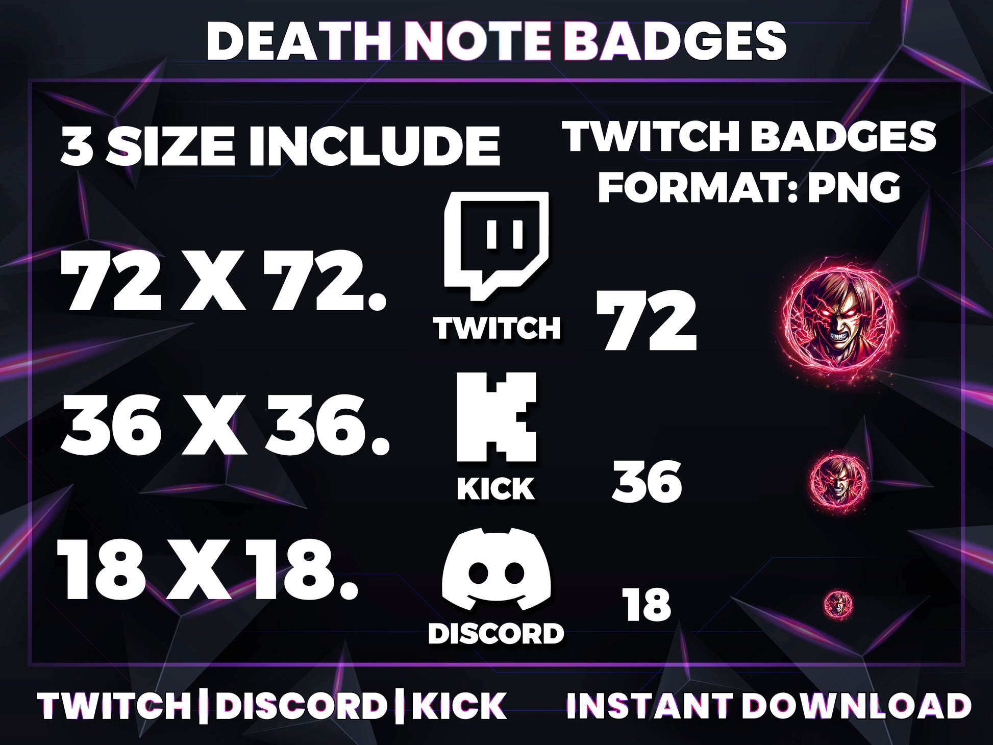 Illuminate your stream with the dark intrigue of Death Note! This 6‑piece subscriber badge set evolves from Base to 1 Year, perfect for rewarding viewer loyalty on Twitch, Discord, Kick, YouTube, and beyond.
