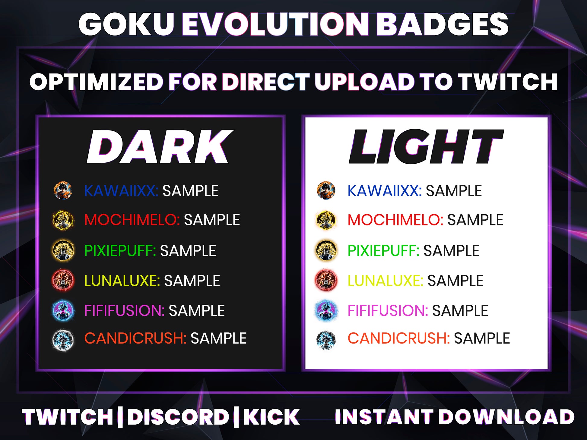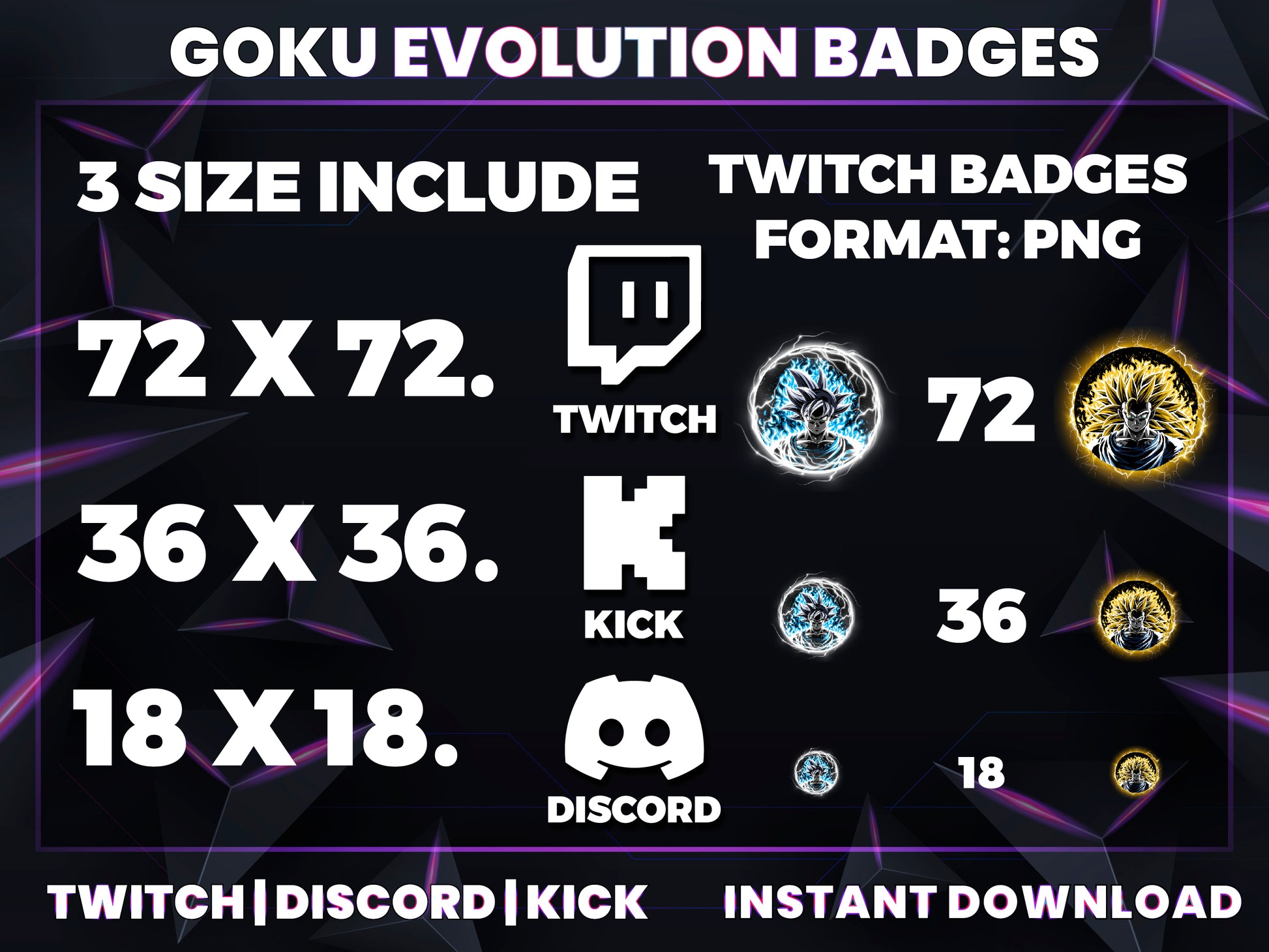 These subscriber badges are perfect for Twitch, Kick, and Discord, letting your audience level up over time while honoring the power and growth of Goku.